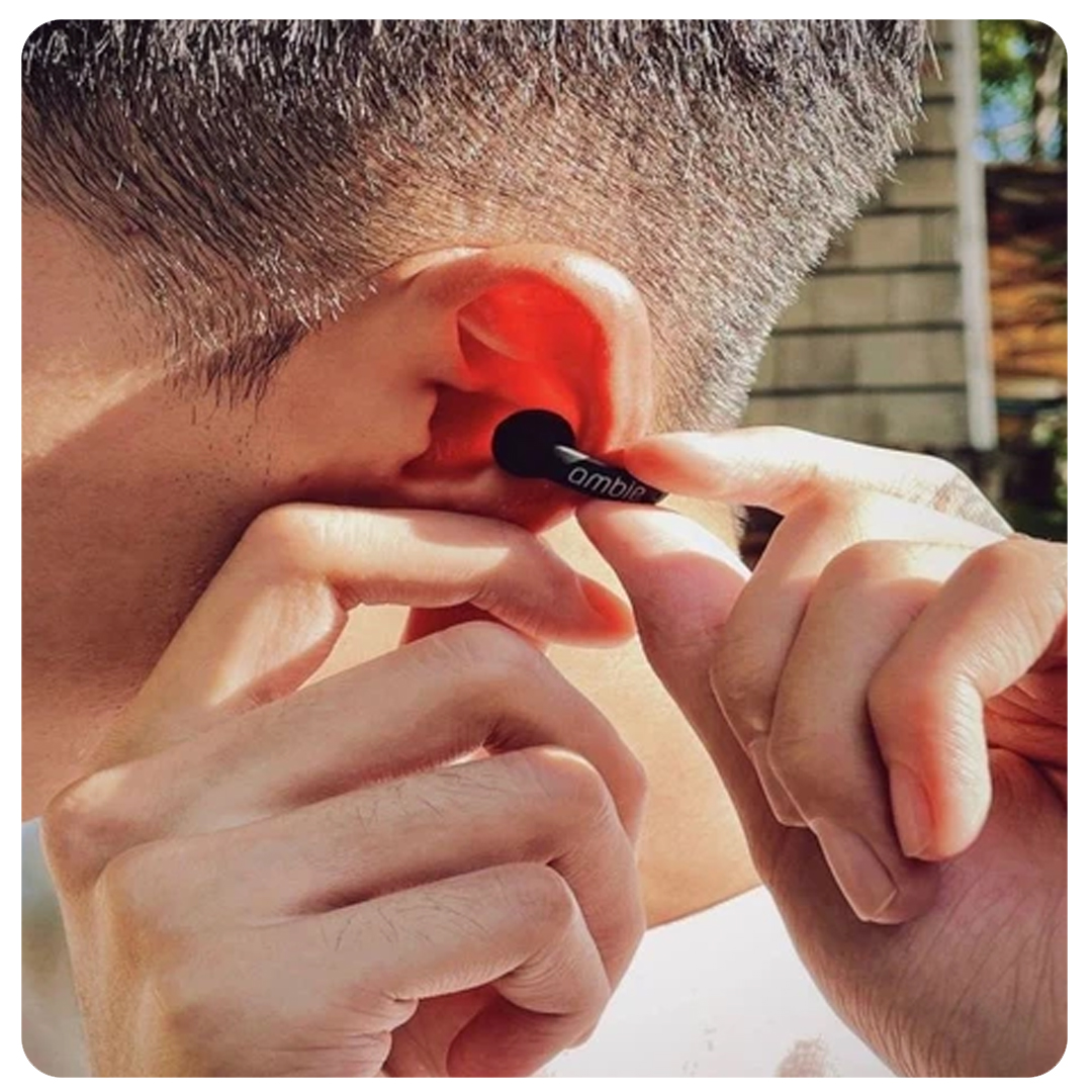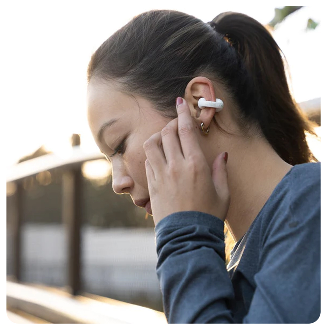 Ambie™ é um fone de ouvido inovador que oferece uma nova maneira de ouvir, sem precisar encaixá-los em seu ouvido. Te dando total liberdade para ouvir o ambiente ao seu redor.